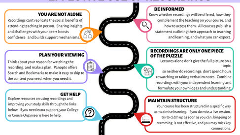 Explore resources on using recordings and improving your study skills through the links below. If you need extra support, your College or Course Organiser is here to help.